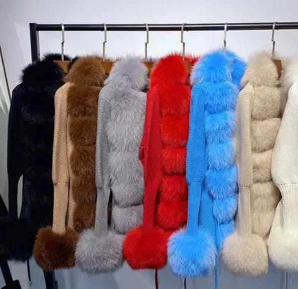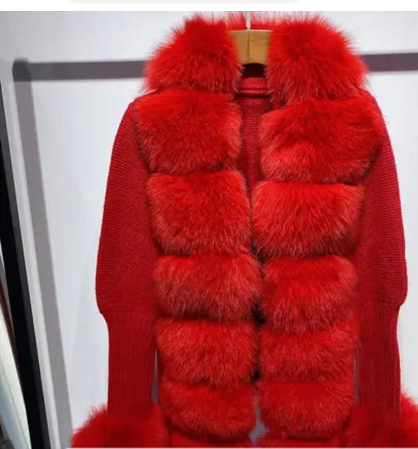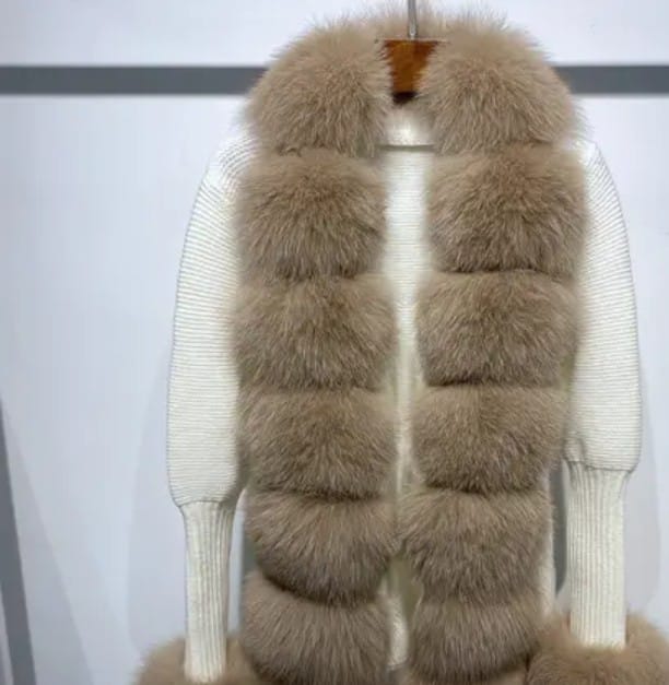 Ms.Foxy Diva 100%fox fur warm fluffy Cardigan sweater